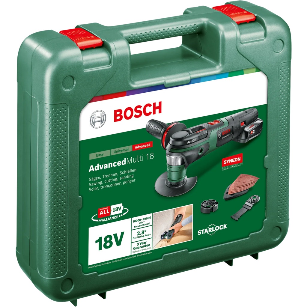 The AdvancedMulti 18 from Bosch is a versatile multi-function tool that offers the freedom and flexibility to work effortlessly on a wide range of materials without cords. With its diverse functions and a powerful motor, it is ideal for DIY enthusiasts and professionals alike. Suitable for sawing, sanding and grinding, among other things.