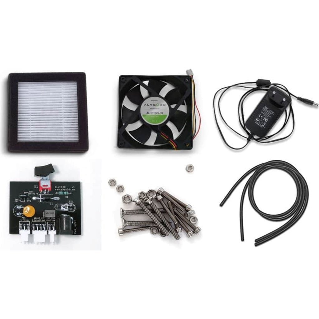 The AlveoONE from Alveo3D is a practical, ready-to-use filter system designed specifically for FDM 3D printers. This filter box is mounted directly on the wall of the enclosure and can be easily integrated into the printer structure. It offers an effective solution against unpleasant odours and reliably protects against harmful emissions generated during the printing process. The system is fully printed (in PETG/ABS) by Alveo3D, assembled and tested so that it can be used immediately.