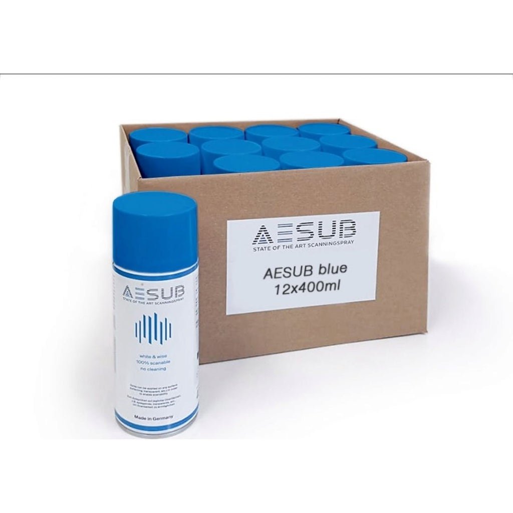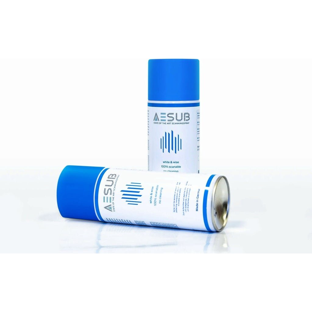 AESUB Blue is a self-evaporating scanning spray developed by scanning experts. The spray evaporates within a few hours so that no time-consuming cleaning of the object and surroundings is required after scanning.