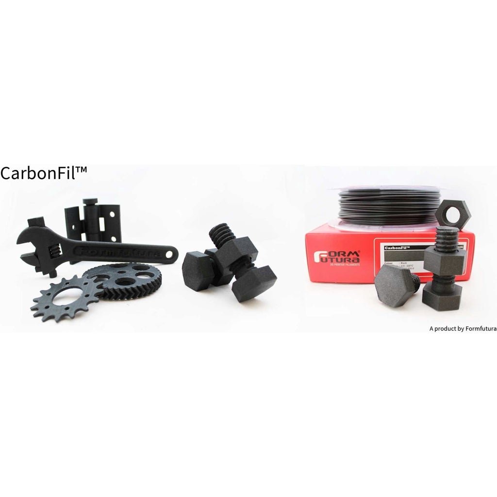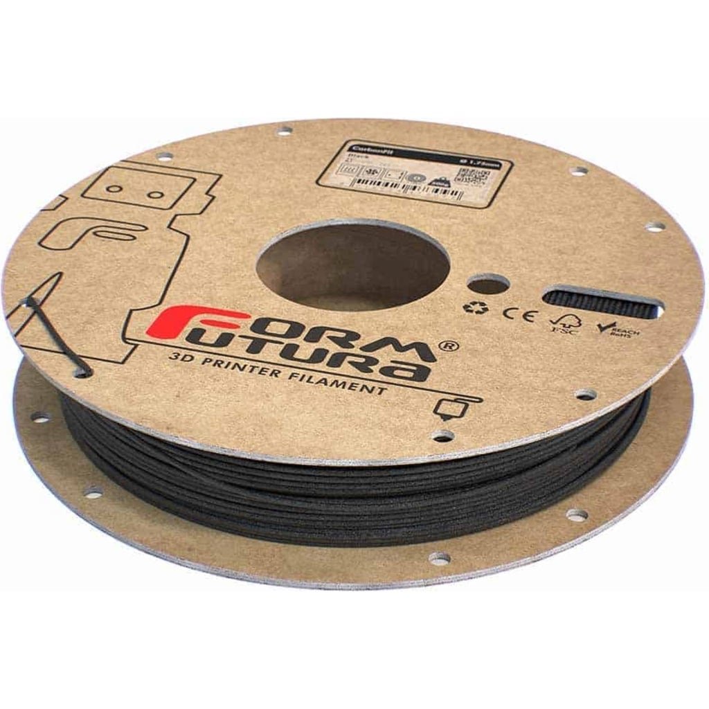 The FormFutura CarbonFil ? filament is based on a unique mix of HDglass? with 20% extremely light-weight and relatively long carbon fibres.