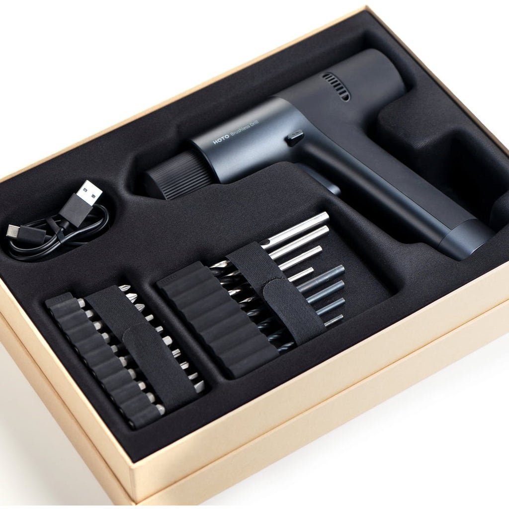 The HOTO Tools 12V Cordless Brushless Electric Drill combines powerful technology with a minimalist design. Thanks to its screwless construction and scratch and dirt-resistant PC ABS housing, it not only looks stylish, but can also withstand any use!