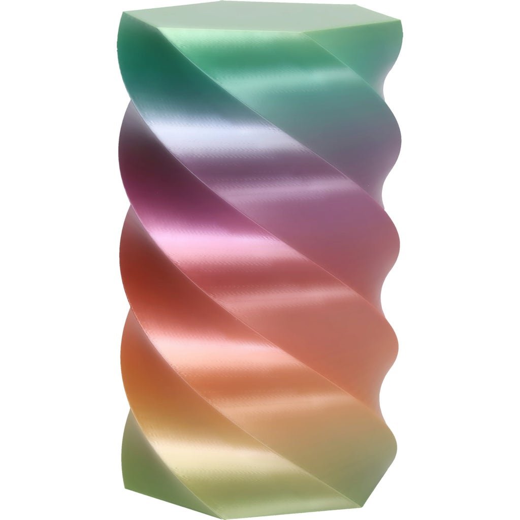 The ecoPLA Silk Rainbow combines a beautiful silky shine with a spectacular colour spectrum. The transitions between the different colours are soft and flowing, creating an elegant fusion of colours. Ideal for colourful models with visual depth.