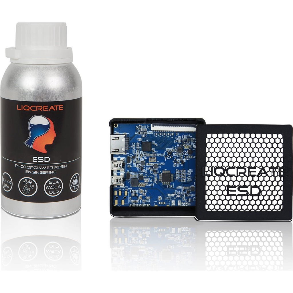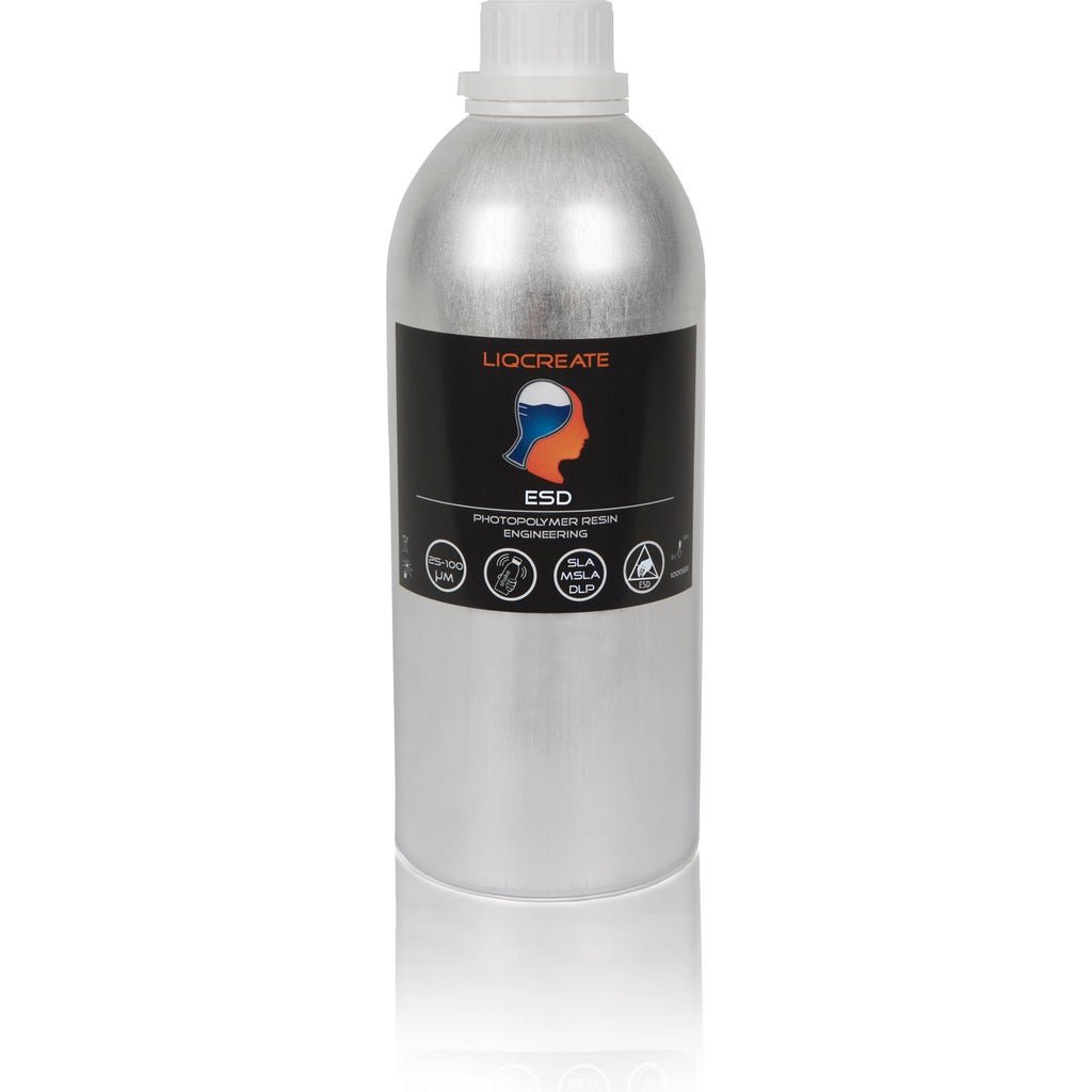 Liqcreate's ESD is an opaque, black photopolymer resin that, thanks to its electrostatic discharge properties, is ideal for the production of electronic components and parts for ESD-safe workplaces (EPA). The resin can be used on most resin-based DLP, LCD and SLA 3D printers in the 385 - 420 nm range.