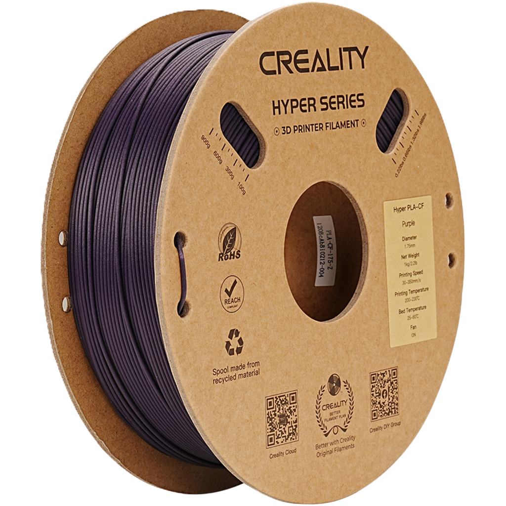 Creality Hyper PLA-CF is a carbon fibre-reinforced PLA material that has 30% higher flexural strength and impact resistance compared to standard PLA. The material is designed for speeds of up to 300 mm/s without causing clogging.