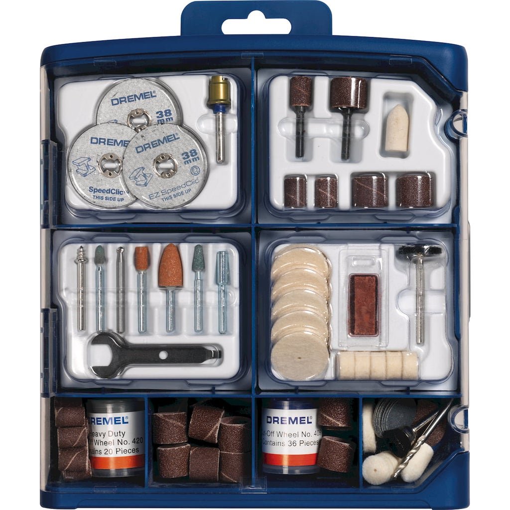 With the multi-purpose accessory set from Dremel, you are well prepared for projects and materials of all kinds! The high-quality accessories are contained in a practical carrying case for organised storage.