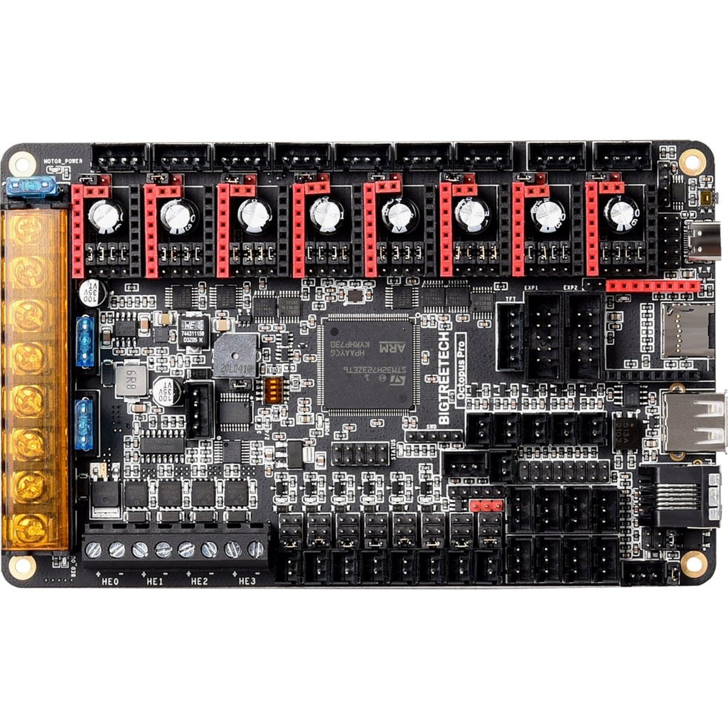 BIGTREETECH Octopus Pro uses a 32-bit ARM Cortex-M4 series chip with a core frequency of 168 or 180 MHz, providing enough power to realise even the most demanding applications and ideas.