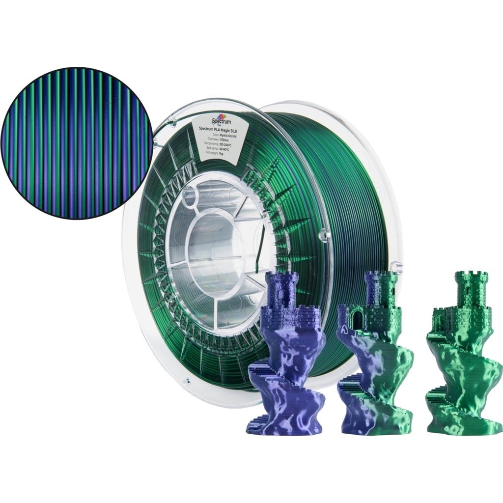 Add a magical touch to your 3D printing projects with Spectrum PLA Magic Silk, a unique filament that transforms each print into a shimmering work of art. Thanks to the innovative coextrusion technology, the material combines two colours in one filament and results in impressive colour gradients that unfold their full dynamics depending on the lighting and viewing angle. You get models that are not only glossy but also display a fascinating depth and unmistakable character.