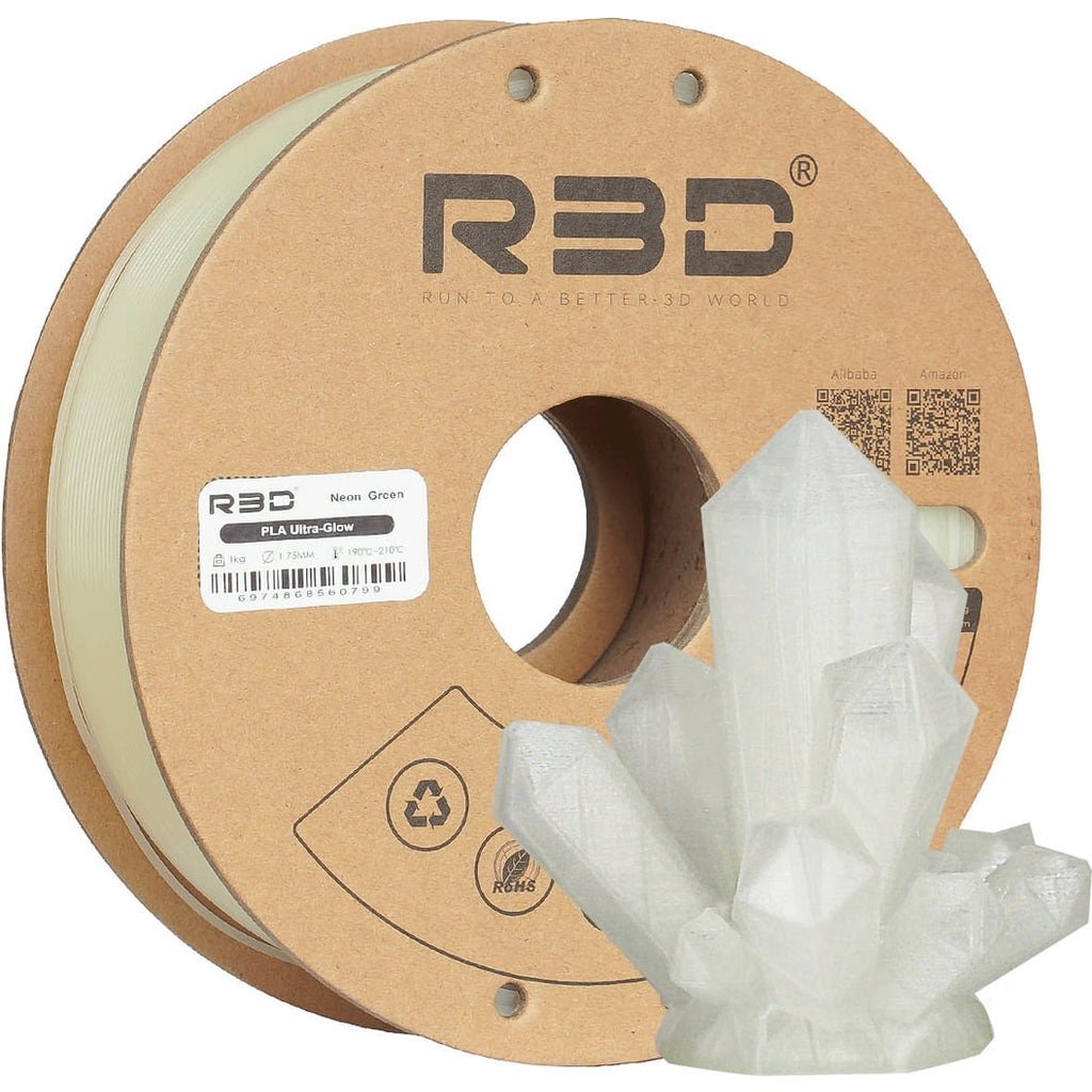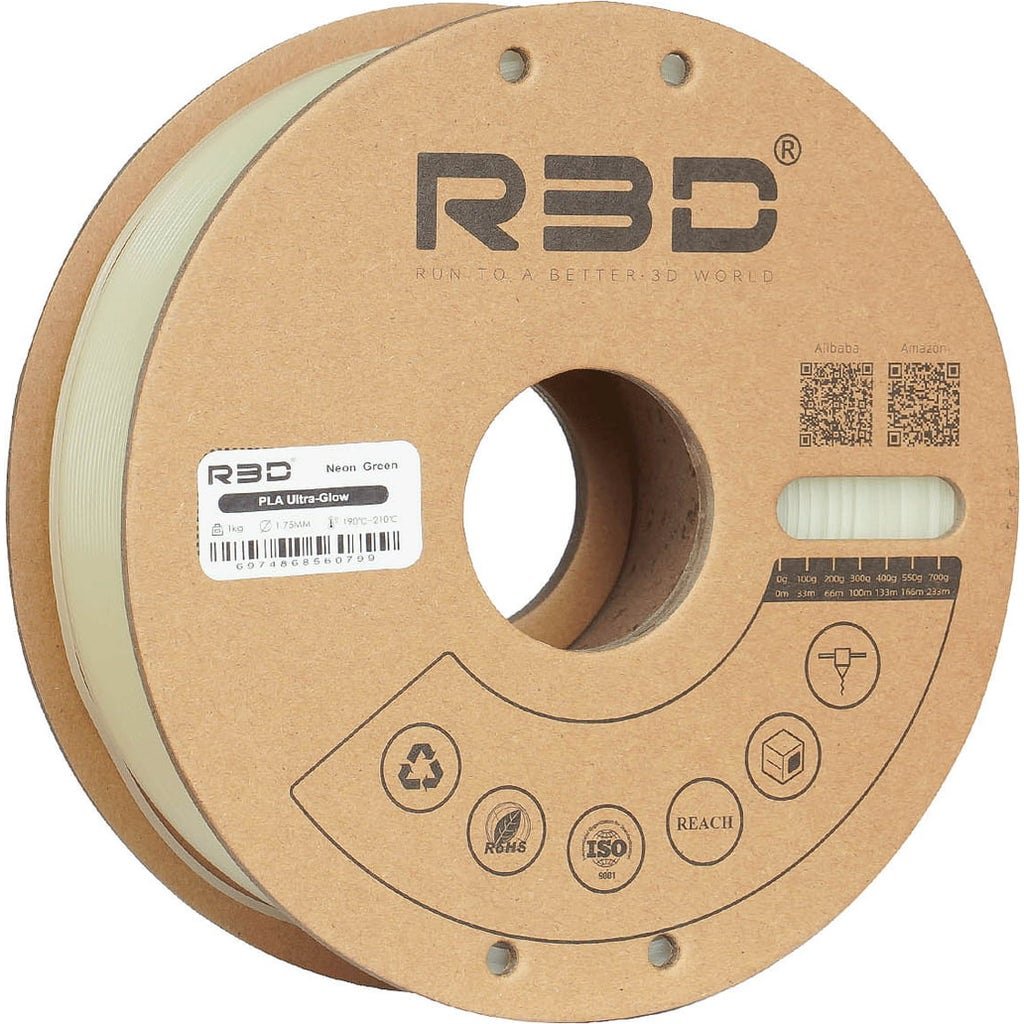 R3D PLA Ultra-Glow is a PLA filament with an intensive glow-in-the-dark effect, which is characterised by its high toughness and strength and can be used in many areas.