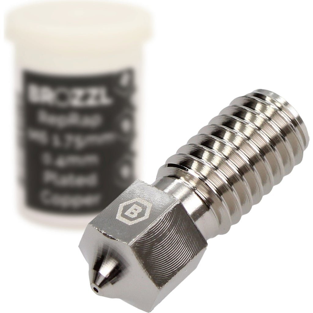 The Plated Copper Nozzles combine the excellent heat conduction of copper and are also extremely resistant due to the coating of nickel. Thus, two of the most important properties are combined in one nozzle and thus it is also possible to print abrasive filaments at high speed.