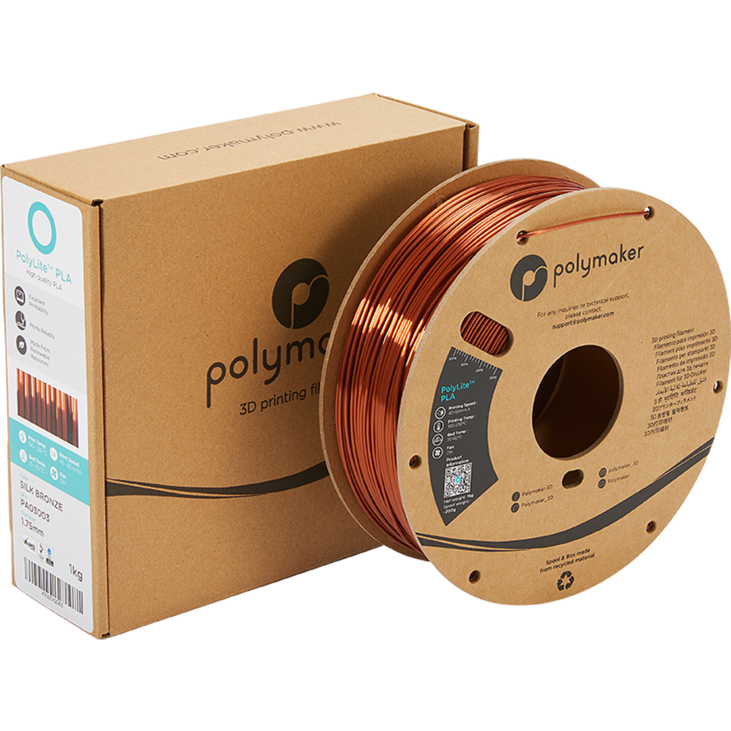 Polymaker's PolyLite Silk PLA is a beautiful and aesthetic PLA filament with a silky-shiny effect! Its special surface finish ensures that individual print layers are less visible on the side faces and an apparently smooth surface comes into daylight!