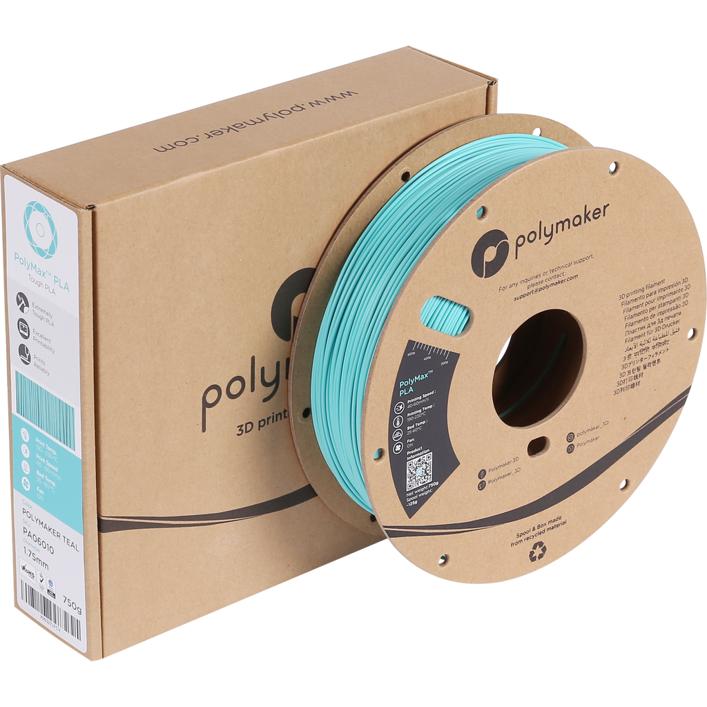 Regular PLA is a very brittle material, which limits the ways you can use it. PolyMax PLA was invented to fix this problem. This PLA has a 9-fold higher impact resistance than standard PLA and 20% better resistance to ABS. This means you can use it for many different tasks!