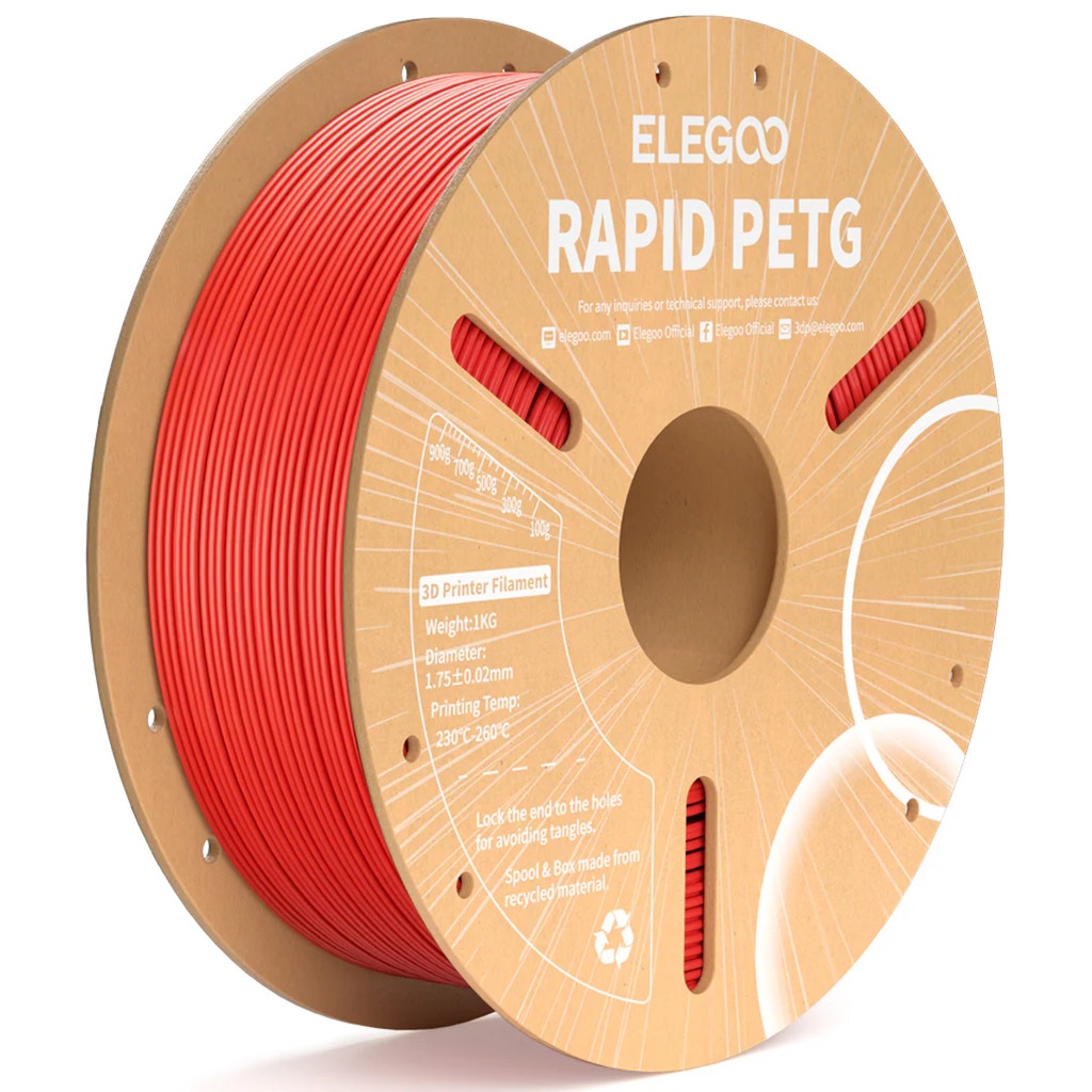 The Rapid PETG from Elegoo combines the easy printability of PLA with the impact resistance and tensile strength of ABS. The material can withstand mechanical loads and impacts and offers excellent thermal mouldability. The rapid PETG filament was specially developed for high-speed printing for speeds of up to 600 mm/s.
