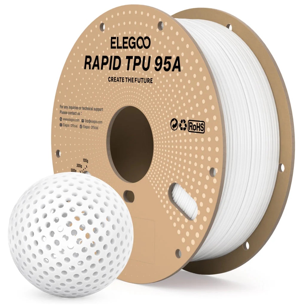 Elegoo Rapid TPU 95A takes flexible 3D printing to the next level. This high-performance filament is specifically engineered for high-speed printing and supports print speeds up to three times faster than conventional TPU 95A materials.