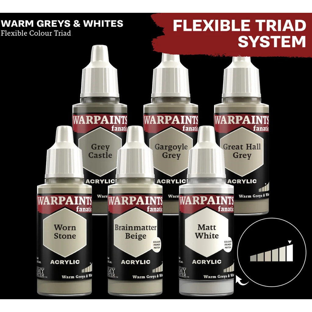 The Warpaints Fanatic: Warm Greys & White from The Army Painter offers you an exquisite selection of warm grey tones that will envelop your models in an atmospheric ambience. From soft misty greys to deep shades, you'll find the ideal colours to bring your miniatures to life.